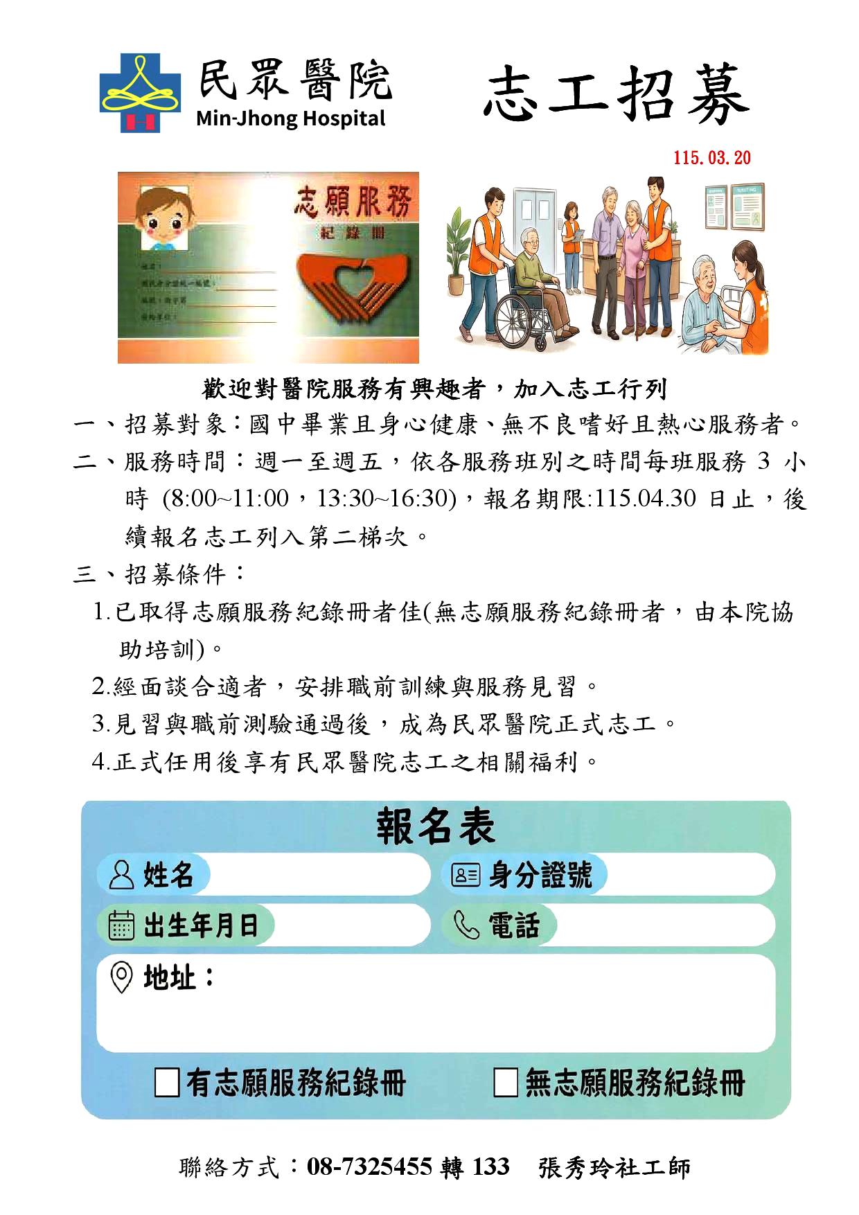 民眾醫院 志工招募中