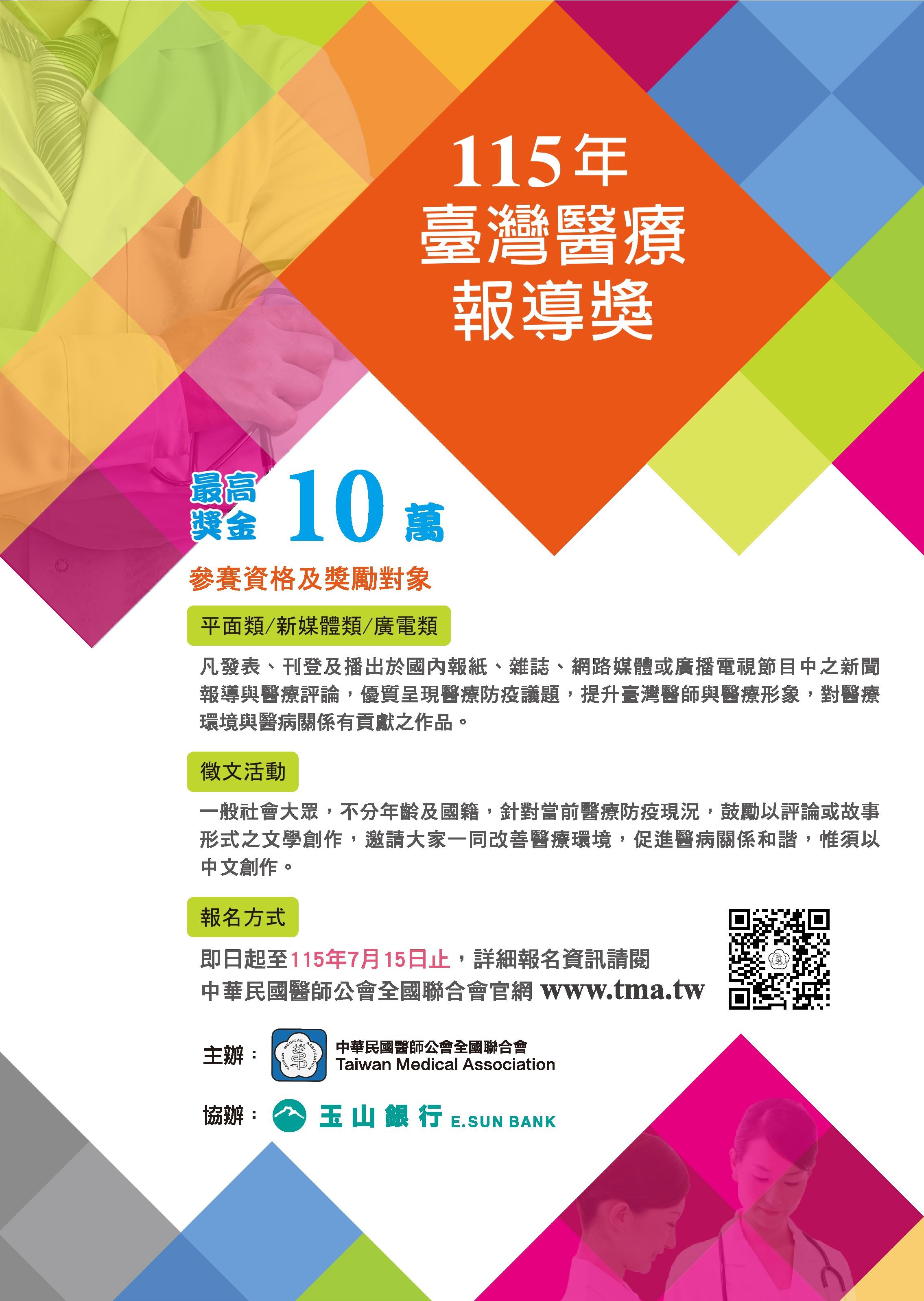 醫師公會全聯會辦理「115年臺灣醫療報導獎及徵文活動」,